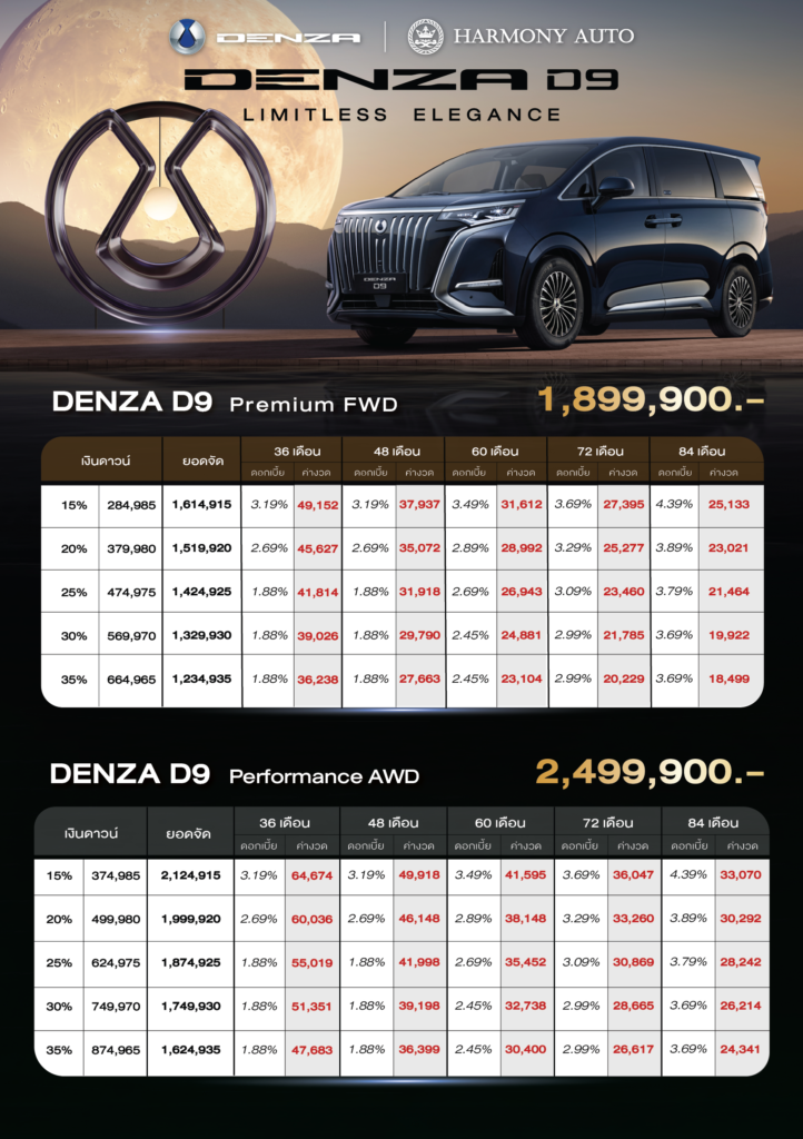 โอกาสพิเศษสำหรับลูกค้า DENZA D9 รถยนต์ MPV ไฟฟ้า ระดับพรีเมียม ให้คุณเปิดประสบการณ์การเดินทางด้วยทั้งดีไซน์ทันสมัย เทคโนโลยีอัจฉริยะ และความสะดวกสบายในทุกมิติ